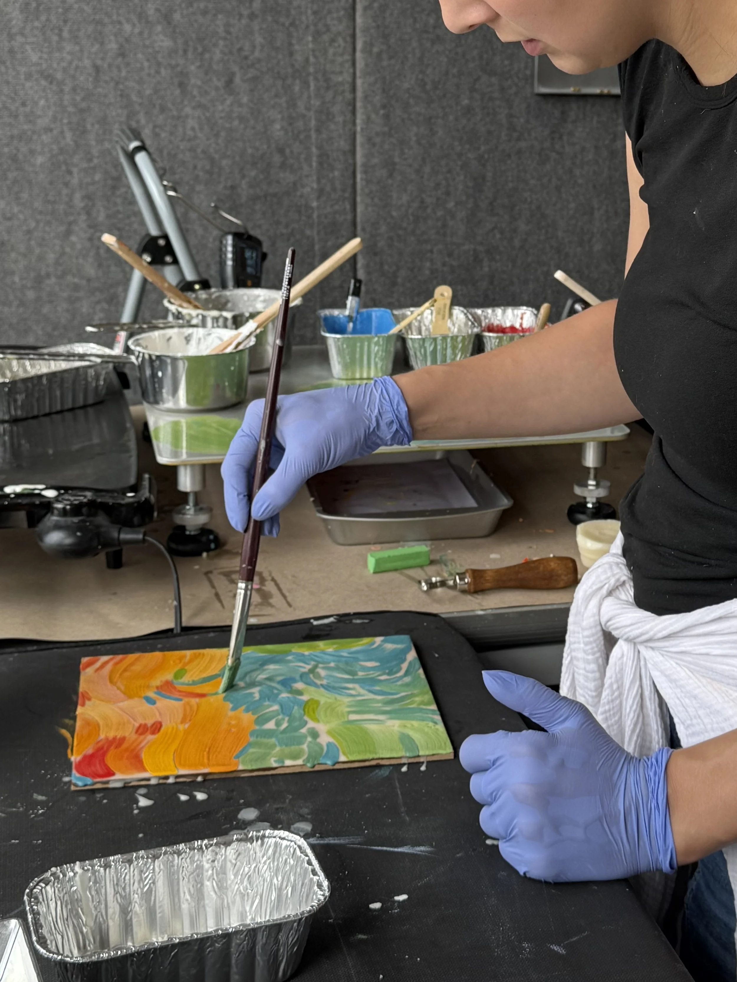 I offer lessons out of my studio in Minneapolis, Minnesota, where you will have access to my heated palettes, encaustic paints, various heating guns & torches, and a wide range of tools/brushes.